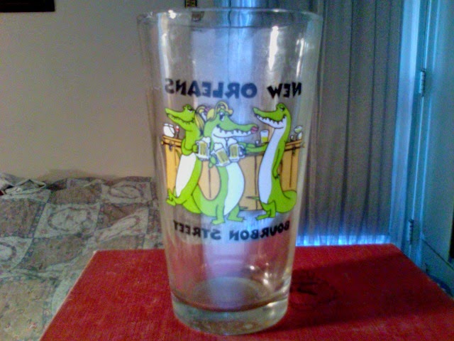 • Beer drinkers, don't drink your beer from the bottle: go get a proper solid-glass pint glass (not some cheap plastic glass) to drink it from. Here's a Photo Booth photo of my venerable "New Orleans Bourbon Street" pint glass that I bought from the NOLA Walgreens at the corner of St. Charles and Felicity for $4 back in 2002: